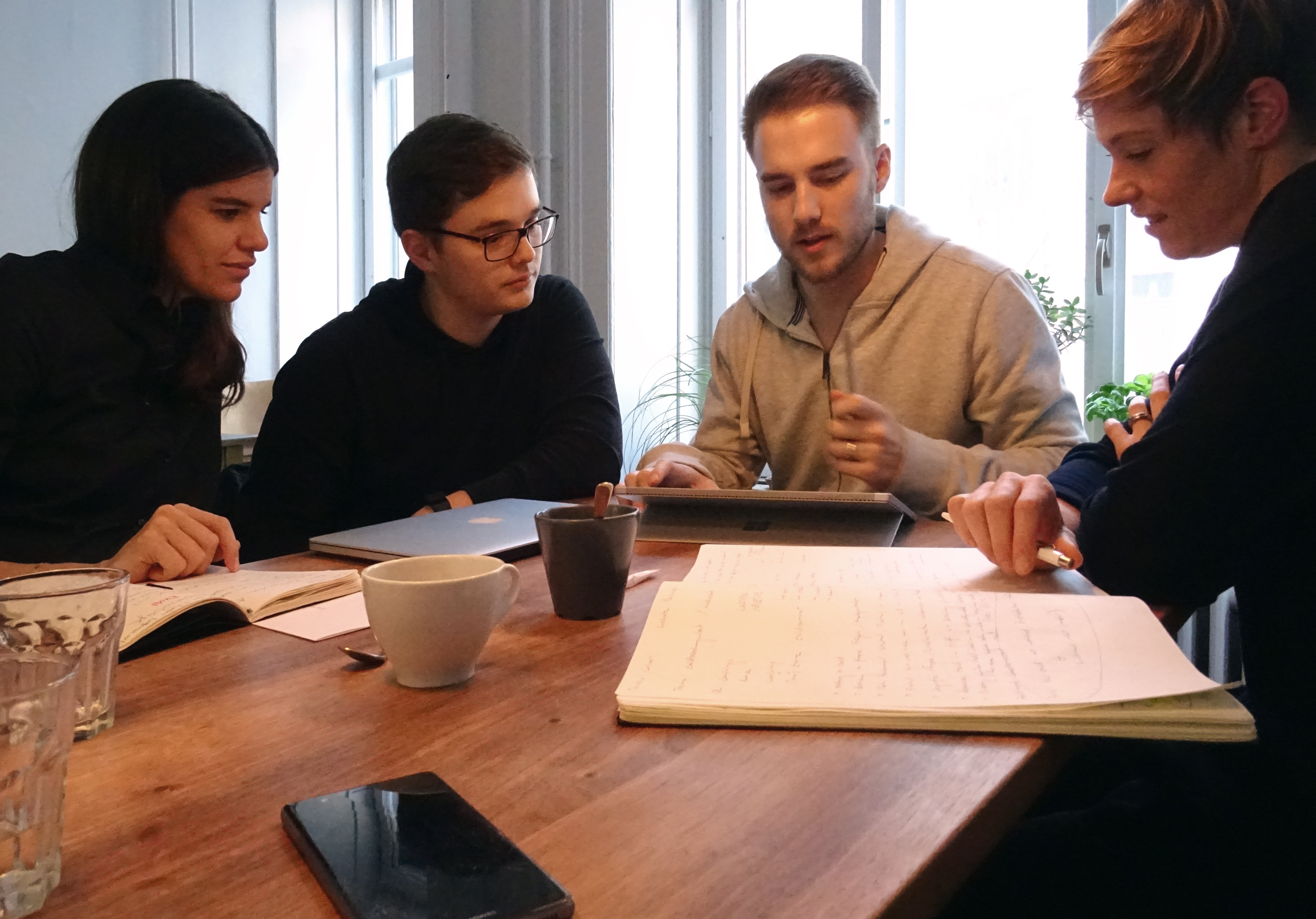 (v.l.n.r.) Laura Prim, Enes und Bajram Emini, Silja Munz bei den letzten Änderungen kurz vor dem Relaunch der Website.